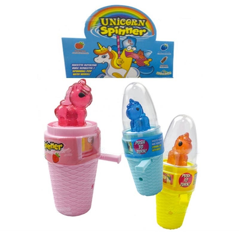 – présentoir de 12 sucette licorne présentée sur un cornet de glace