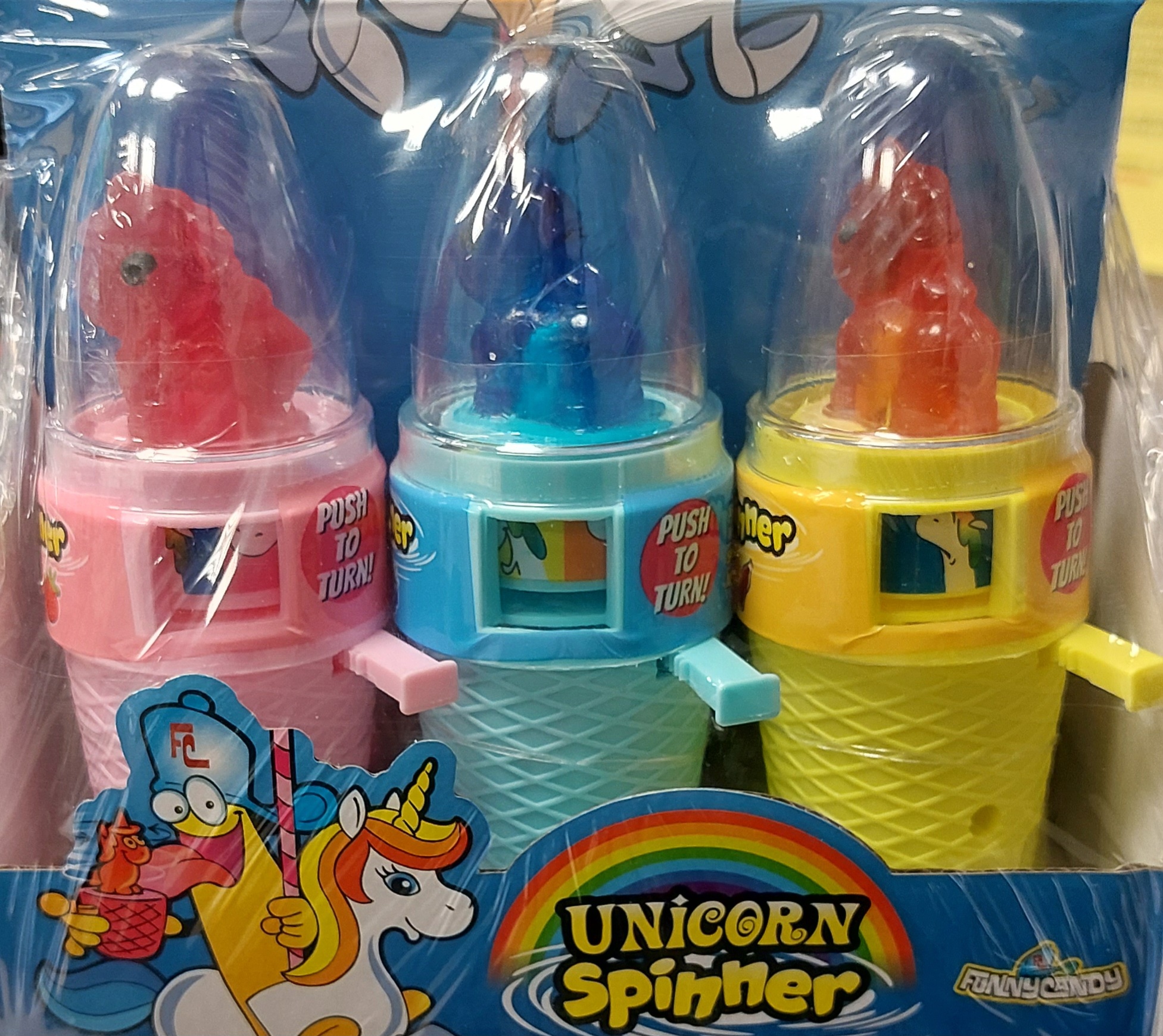 – présentoir de 12 distributeurs de bonbons en forme de licorne